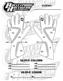 Glove logo placement form PDF Use this form for logo placement on you custom racing gloves Download "BulletproofGloves.pdf"